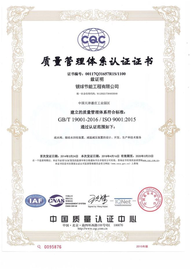 质量管理体系认证证书